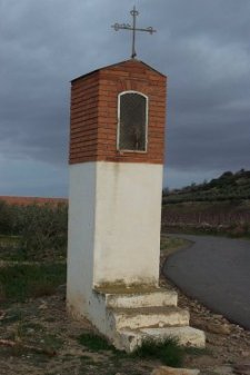 derecho del barranco. Un Peirón es exactamente un monumento de piedra y/o ladrillo situado en el inicio o en el cruce de dos caminos con el fin de bendecir los campos y otorgarles protección, Así como servir de orientación. Consta de tres partes fundamentalmente: - La base, la parte mas ancha y que suele ser de uno o varios escalones. - La columna, normalmente cuadrada y mas o menos decorada con formas geométricas en relieve. - En la parte superior suele haber una cruz, una hornacina o ambas. Si tienen hornacina, dentro se aloja la imagen de un santo o virgen, protegida por un tejadillo. Es una figura arquitectónica de pequeñas dimensiones, en forma de pilar o columna de sección cuadrada, raramente circular y muy escasamente octogonal, construida en piedra o ladrillo y mayormente revocadas con cal o yeso, de forma prismática y de 2 a 4 metros de altura (auque podemos verlos llegar a los 5 e incluso a los 7 metros) y 0'5 metros de lado o diámetro (también en este caso podemos verlos de 1 metro). Generalmente están emplazados sobre una grada (plataforma) de uno o varios escalones desiguales (peldaños) de piedra. Sobre ella, una basa o plinto que sustenta el tronco, rematado éste en su parte superior por un cuerpo (cabecero o edículo) abierto por una o varias capillas u hornacina, donde se guarda, en el mejor de los casos, el santo a cuya advocación se ha erigido o se encomienda el lugar y camino. El cimacio de coronación o cubierta suele ser un tejadillo o chapitel a dos o cuatro vertientes si el peirón es prismático o cónico si este es cilíndrico; pueden ser planos o con teja, en en cuya cumbrera se coloca como remate una cruz de hierro. |