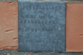Este Peirón de reciente construcción se encuentra en la Finca de ARGILLO, en las proximidades de la localidad de Calatorao. Tomando la carretera entre esta localidad y Lucena de Jalon, se encuentra la Finca Argillo, donde ademas de crianza de perros de caza existe un coto privado donde los cazadores pueden disfrutar de su afición. Ademas hay un campo de Tiro al Plato. A un lado del mismo, existe una placa ( ver foto ) donde reza: " LEVANTADO POR D. JESUS IBARRA BARRAQUETA, ENERO DE 2.000, SAN HUBERTO. | |