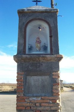 Un Peirón es exactamente un monumento de piedra y/o ladrillo situado en el inicio o en el cruce de dos caminos con el fin de bendecir los campos y otorgarles protección, Así como servir de orientación. Consta de tres partes fundamentalmente: - La base, la parte mas ancha y que suele ser de uno o varios escalones. - La columna, normalmente cuadrada y mas o menos decorada con formas geométricas en relieve. - En la parte superior suele haber una cruz, una hornacina o ambas. Si tienen hornacina, dentro se aloja la imagen de un santo o virgen, protegida por un tejadillo . Es una figura arquitectónica de pequeñas dimensiones, en forma de pilar o columna de sección cuadrada, raramente circular y muy escasamente octogonal, construida en piedra o ladrillo y mayormente revocadas con cal o yeso, de forma prismática y de 2 a 4 metros de altura (auque podemos verlos llegar a los 5 e incluso a los 7 metros) y 0'5 metros de lado o diámetro (también en este caso podemos verlos de 1 metro). Generalmente están emplazados sobre una grada (plataforma) de uno o varios escalones desiguales (peldaños) de piedra. Sobre ella, una basa o plinto que sustenta el tronco, rematado éste en su parte superior por un cuerpo (cabecero o edículo) abierto por una o varias capillas u hornacina, donde se guarda, en el mejor de los casos, el santo a cuya advocación se ha erigido o se encomienda el lugar y camino. El cimacio de coronación o cubierta suele ser un tejadillo o chapitel a dos o cuatro vertientes si el peirón es prismático o cónico si este es cilíndrico; pueden ser planos o con teja, en en cuya cumbrera se coloca como remate una cruz de hierro. | |
